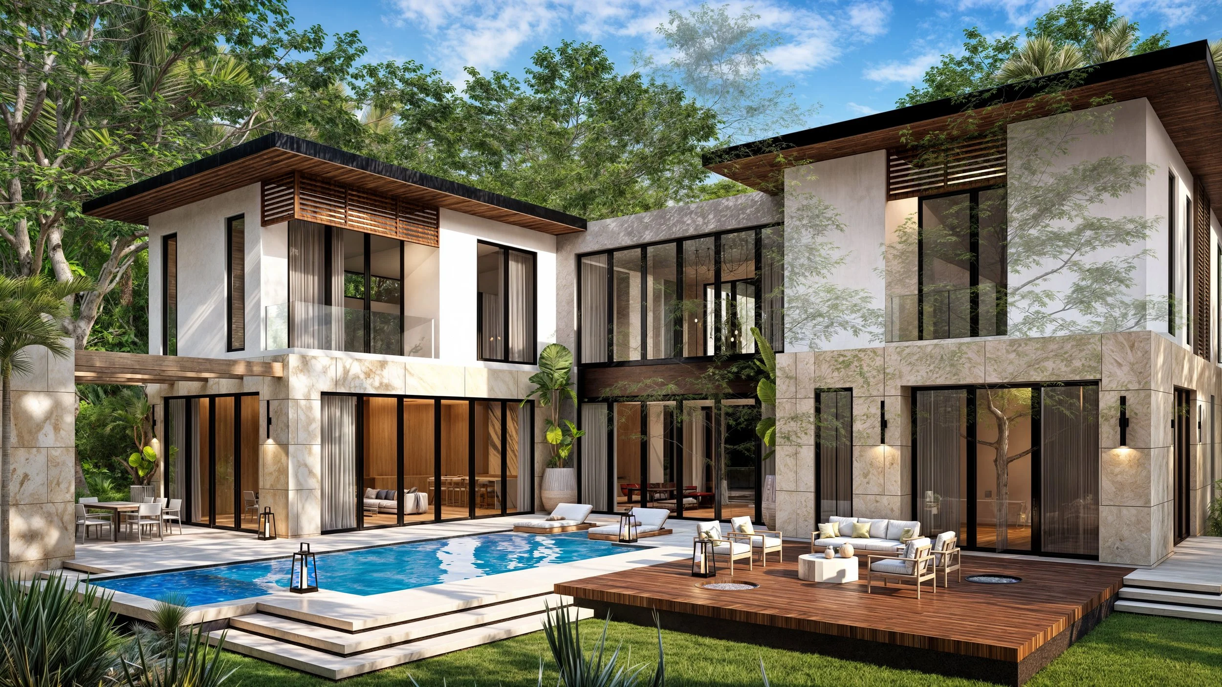 Modern tropical residence designed to blend clean architectural lines with natural surroundings. The project emphasizes open spaces, natural light, and seamless indoor-outdoor living, supported by fully coordinated MEP systems to ensure performance, efficiency, and comfort.